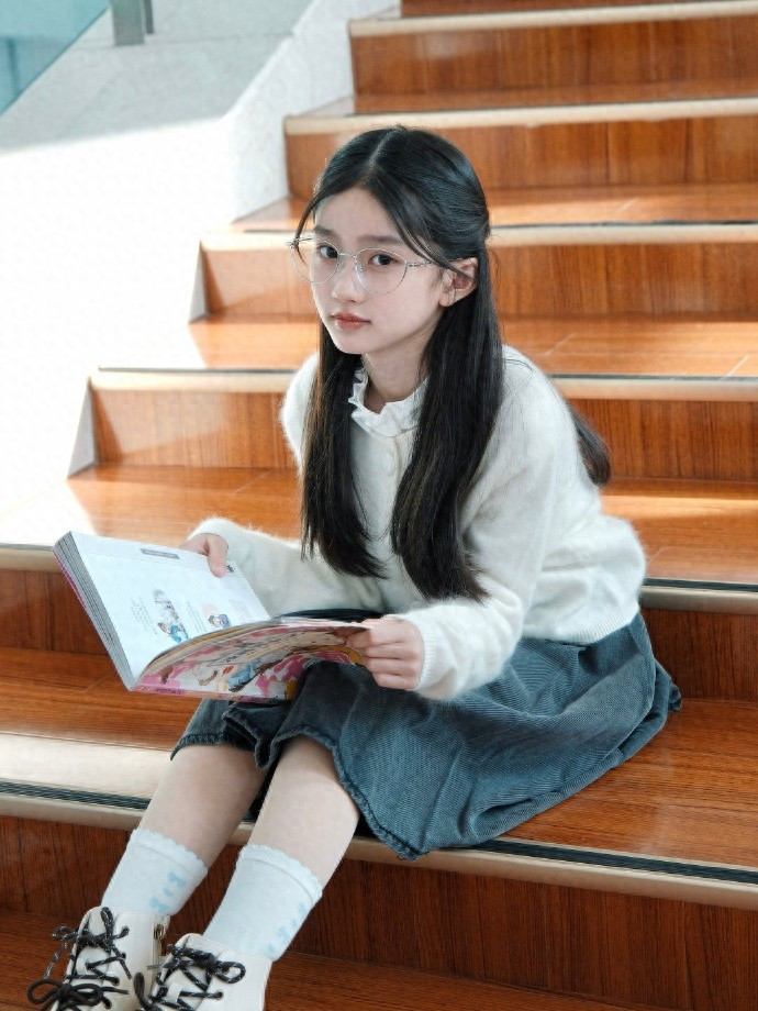 > 童星卢雅熙图书馆写真, 眼神太有范了